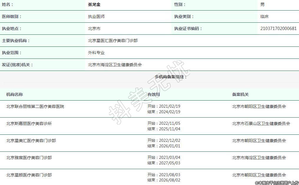 北京星醫(yī)匯醫(yī)療美容執(zhí)業(yè)醫(yī)生