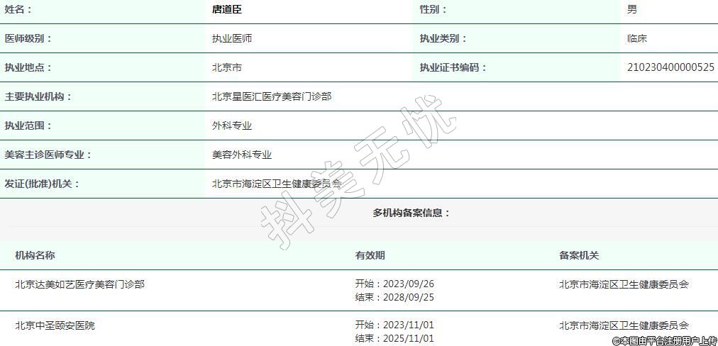 北京星醫(yī)匯醫(yī)療美容執(zhí)業(yè)醫(yī)生