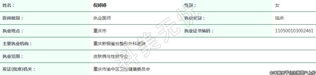 重慶新銅雀臺整形外科執(zhí)業(yè)醫(yī)師