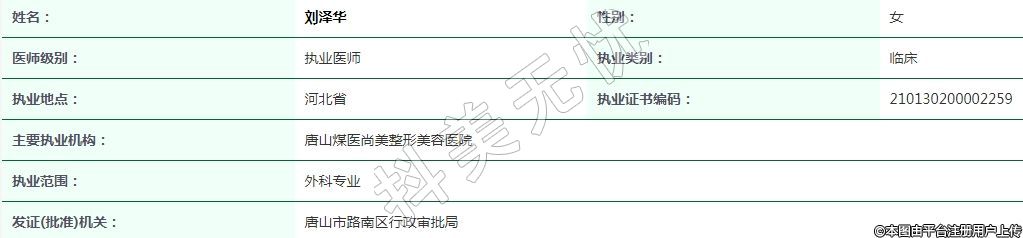 唐山煤醫(yī)尚美整形美容執(zhí)業(yè)醫(yī)師