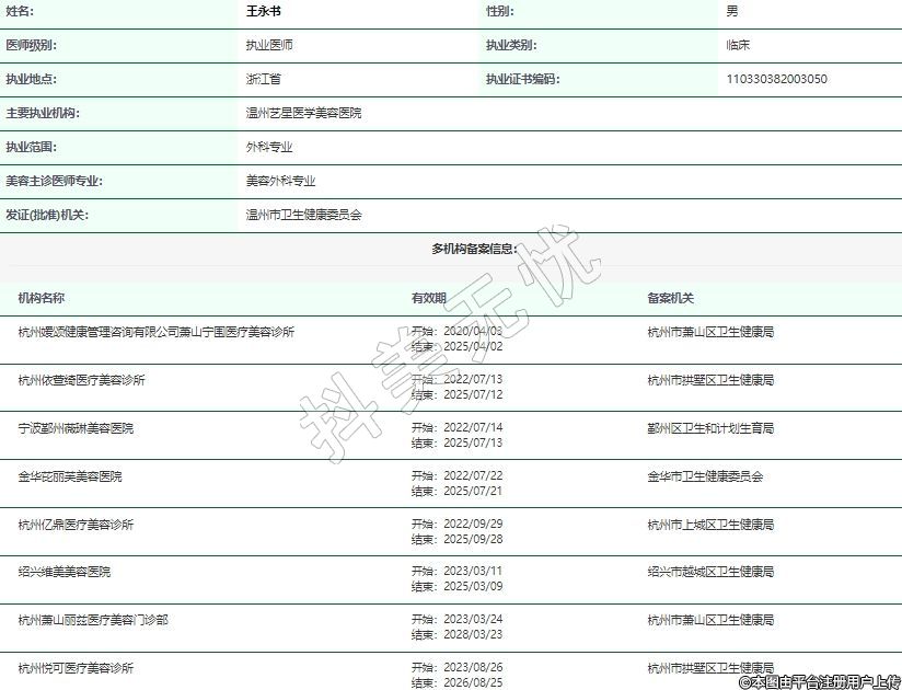 主要執(zhí)業(yè)機構(gòu):溫州藝星醫(yī)學(xué)美容醫(yī)院
