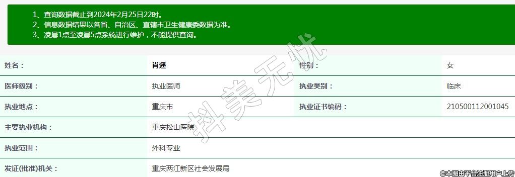 重慶松山醫(yī)院醫(yī)療美容科執(zhí)業(yè)醫(yī)師