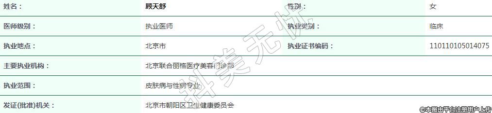北京聯(lián)合麗格醫(yī)療美容執(zhí)業(yè)醫(yī)生