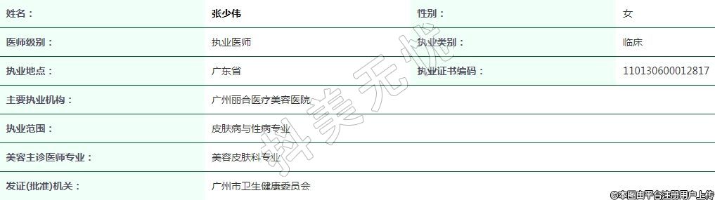 廣州麗合醫(yī)療美容執(zhí)業(yè)醫(yī)師