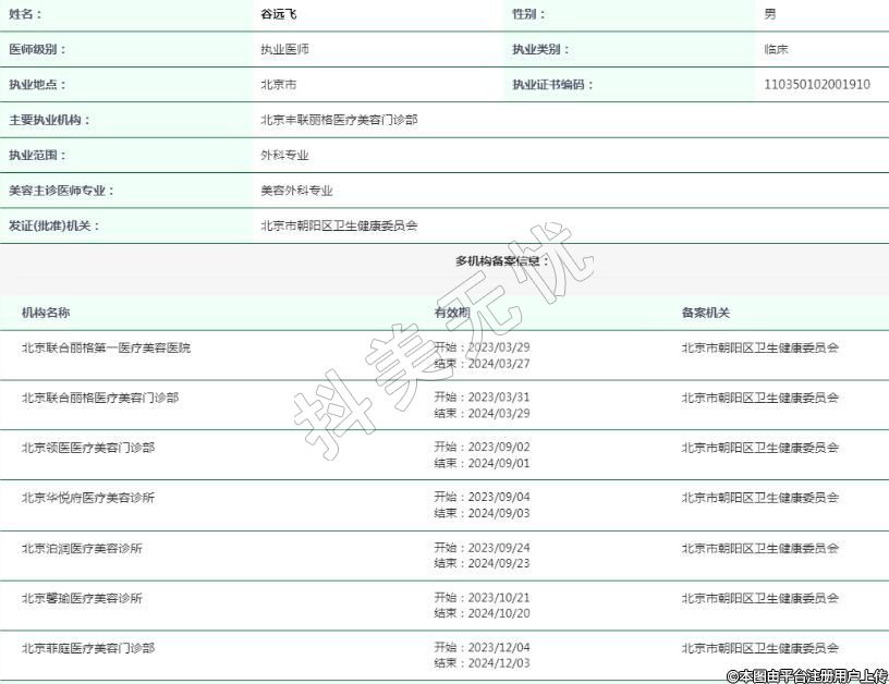 北京聯(lián)合麗格醫(yī)療美容執(zhí)業(yè)醫(yī)生