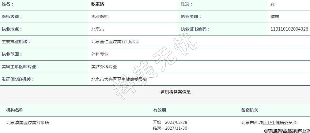 主要執(zhí)業(yè)機構:北京童仁醫(yī)療美容門診部