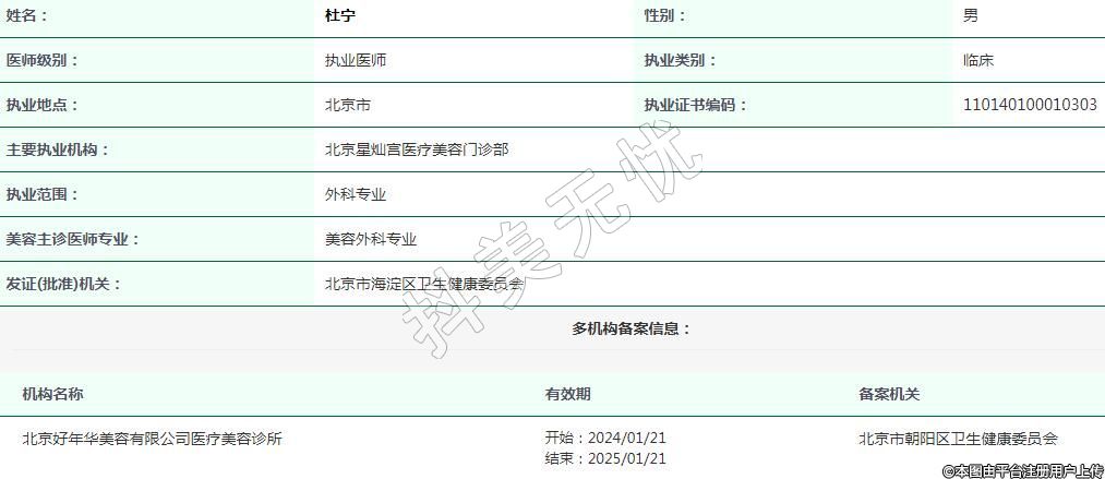 主要執(zhí)業(yè)機構(gòu):北京星燦宮醫(yī)療美容門診部