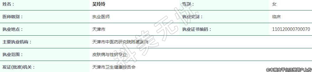 執(zhí)業(yè)范圍:皮膚病與性病專業(yè)