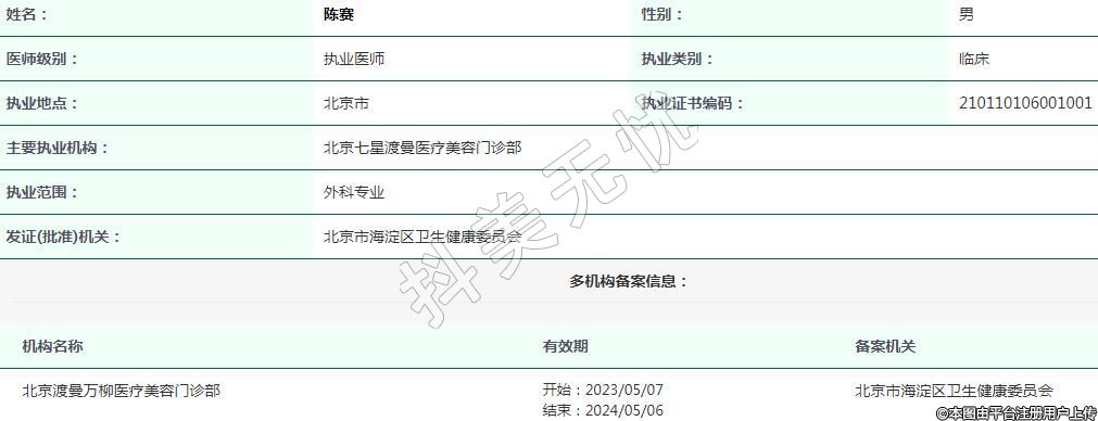 主要執(zhí)業(yè)機構:北京七星渡曼醫(yī)療美容門診部