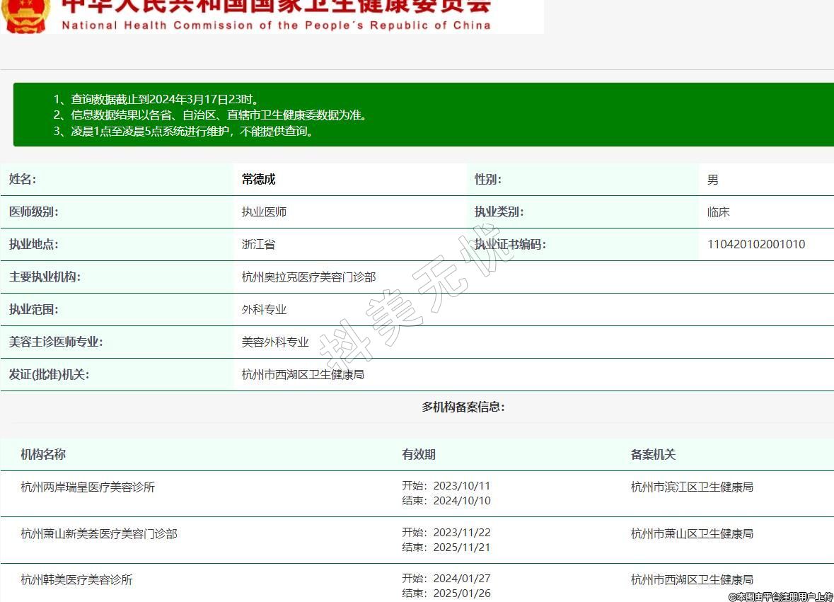 發(fā)證(批準)機關:杭州市西湖區(qū)衛(wèi)生健康局