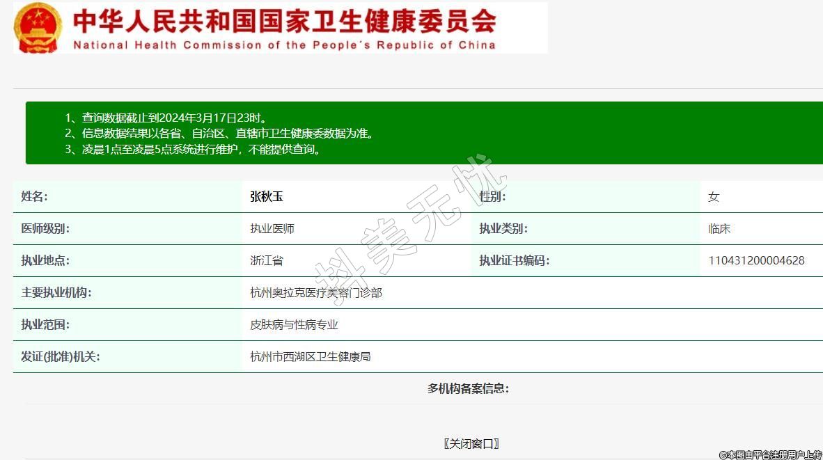 主要執(zhí)業(yè)機(jī)構(gòu):杭州奧拉克醫(yī)療美容門診部