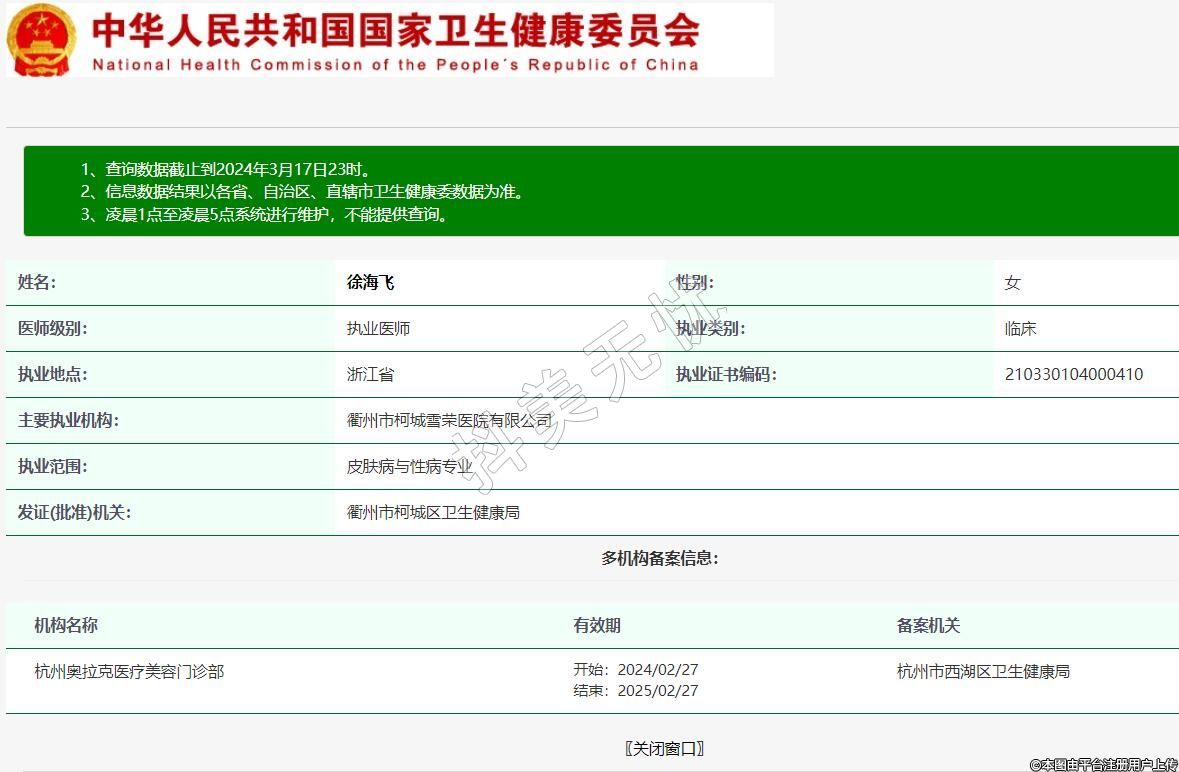 備案機關:杭州市西湖區(qū)衛(wèi)生健康局