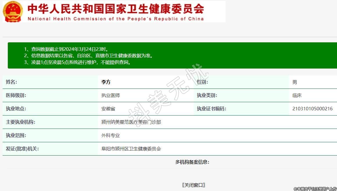 主要執(zhí)業(yè)機(jī)構(gòu):潁州納美星范醫(yī)療美容門診部