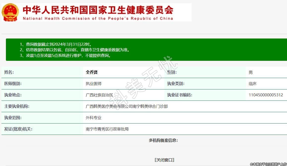 主要執(zhí)業(yè)機(jī)構(gòu):廣西韓美醫(yī)療美容有限公司南寧韓美綜合門(mén)診部