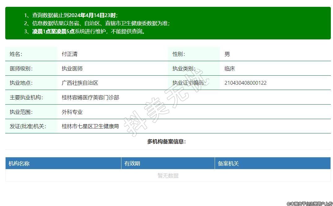 主要執(zhí)業(yè)機(jī)構(gòu):桂林容嫣醫(yī)療美容門診部