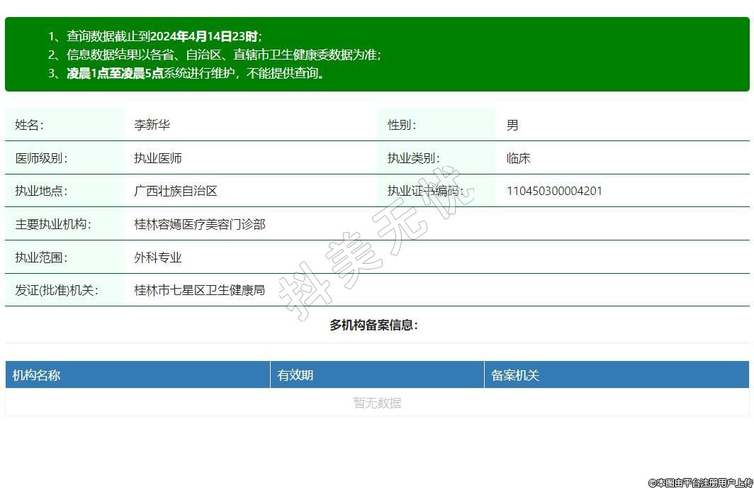 主要執(zhí)業(yè)機(jī)構(gòu):桂林容嫣醫(yī)療美容門診部