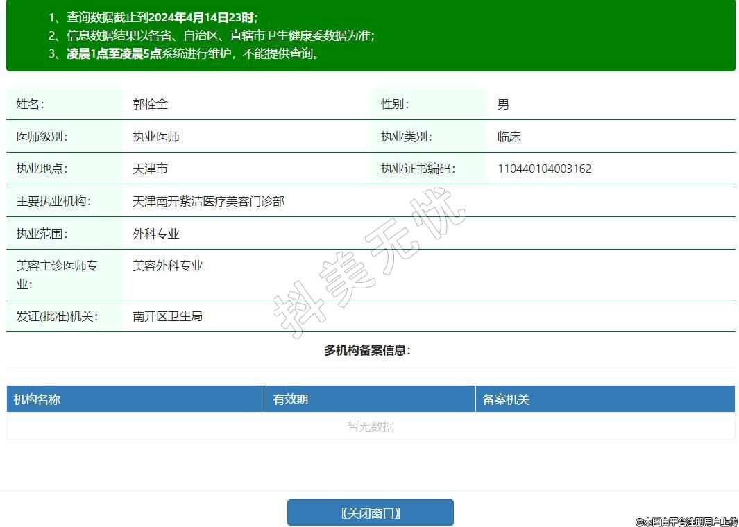主要執(zhí)業(yè)機構(gòu):天津南開紫潔醫(yī)療美容門診部