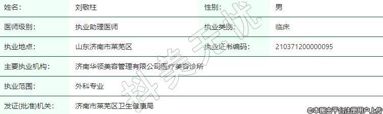 主要執(zhí)業(yè)機(jī)構(gòu):濟(jì)南華領(lǐng)美容管理有限公司醫(yī)療美容診所