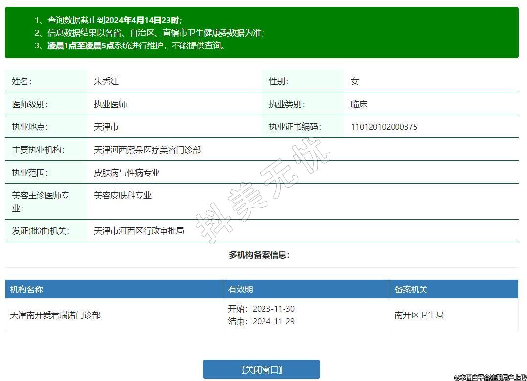 主要執(zhí)業(yè)機(jī)構(gòu):天津河西熙朵醫(yī)療美容門診部