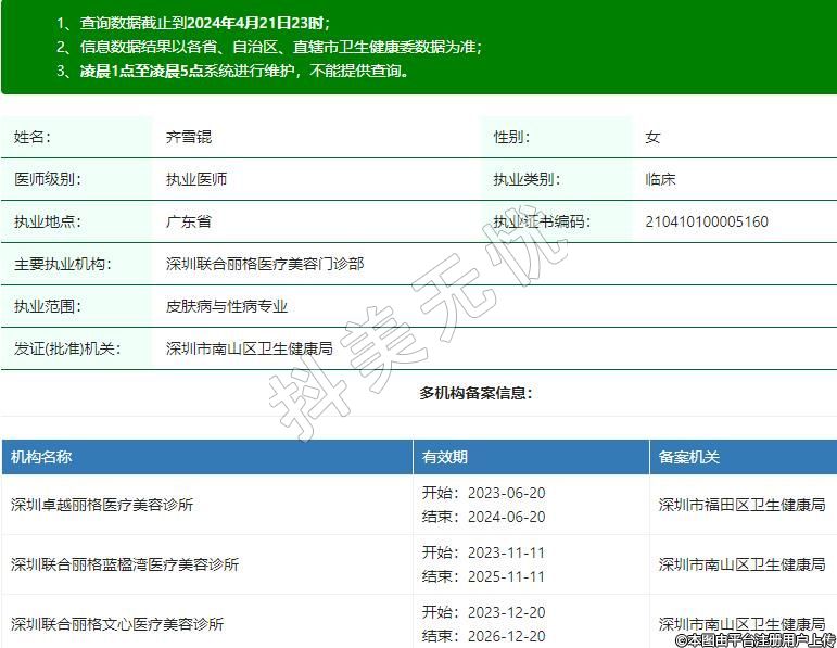 主要執(zhí)業(yè)機(jī)構(gòu):深圳聯(lián)合麗格醫(yī)療美容門診部