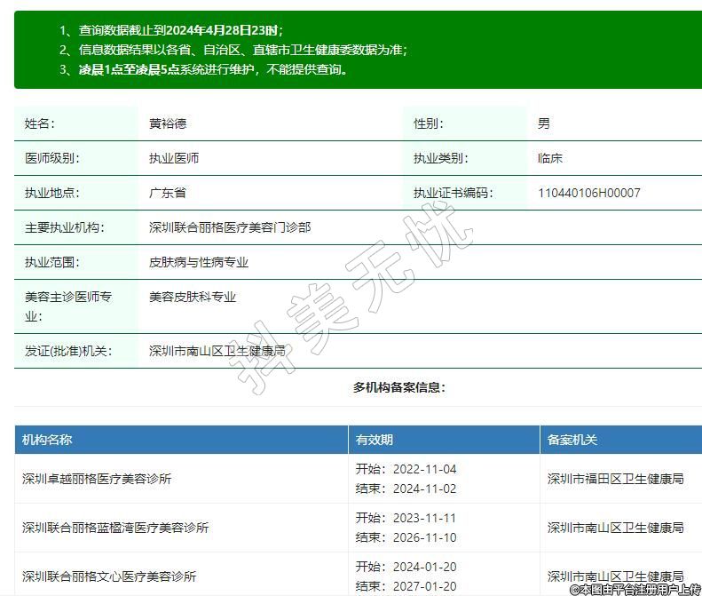 主要執(zhí)業(yè)機構:深圳聯(lián)合麗格醫(yī)療美容門診部