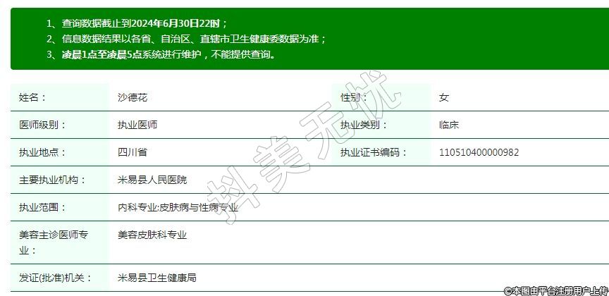 執(zhí)業(yè)范圍:內(nèi)科專(zhuān)業(yè);皮膚病與性病專(zhuān)業(yè)