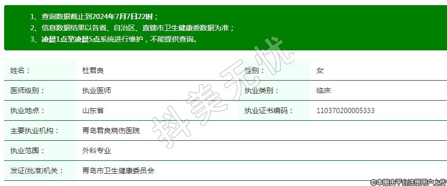 青島君良燒傷醫(yī)院疤痕美容執(zhí)業(yè)醫(yī)師