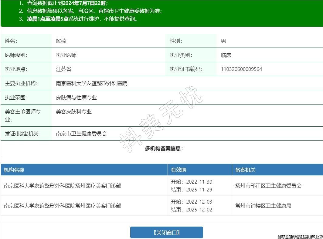 機(jī)構(gòu)名稱:南京醫(yī)科大學(xué)友誼整形外科醫(yī)院揚州醫(yī)療美容門診部
