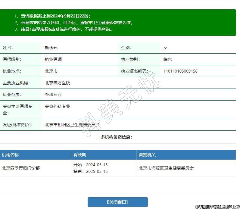 甄永環(huán)性別:女醫(yī)師級別:執(zhí)業(yè)醫(yī)師執(zhí)業(yè)類別:臨床執(zhí)業(yè)地點:北京市執(zhí)業(yè)證書編碼:110110105009158主要執(zhí)業(yè)機(jī)構(gòu):北京善方醫(yī)院執(zhí)業(yè)范圍:外科專業(yè)美容主診醫(yī)師專業(yè):美容外科專業(yè)多機(jī)構(gòu)備案信息:機(jī)構(gòu)名稱 有效期 備案機(jī)關(guān) 北京四季青橙門診部 開始:2024-05-15結(jié)束:2025-05-15北京市海淀區(qū)衛(wèi)生健康委員會 信息來源:國家健康衛(wèi)生委員會