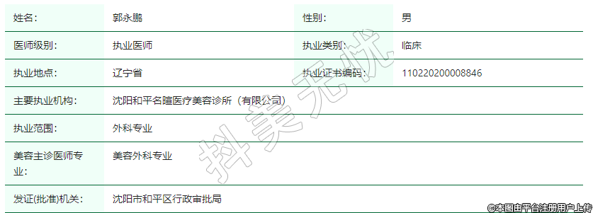 主要執(zhí)業(yè)機構:沈陽和平名暄醫(yī)療美容診所(有限公司)