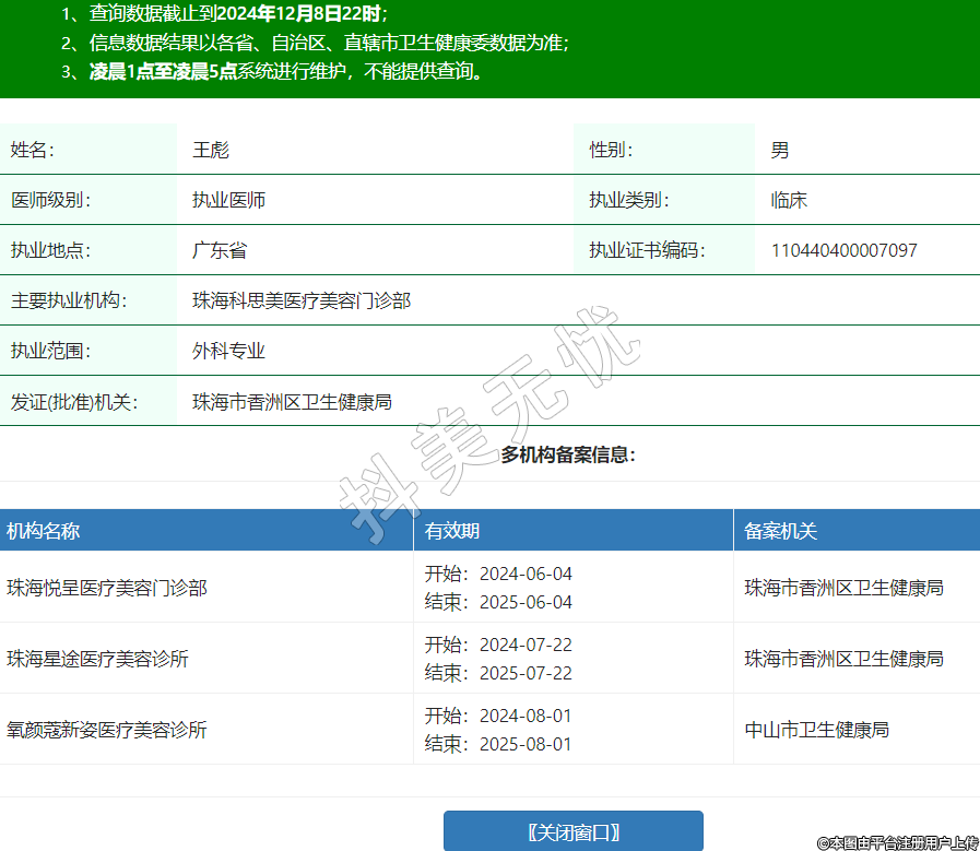 主要執(zhí)業(yè)機(jī)構(gòu):珠海科思美醫(yī)療美容門診部