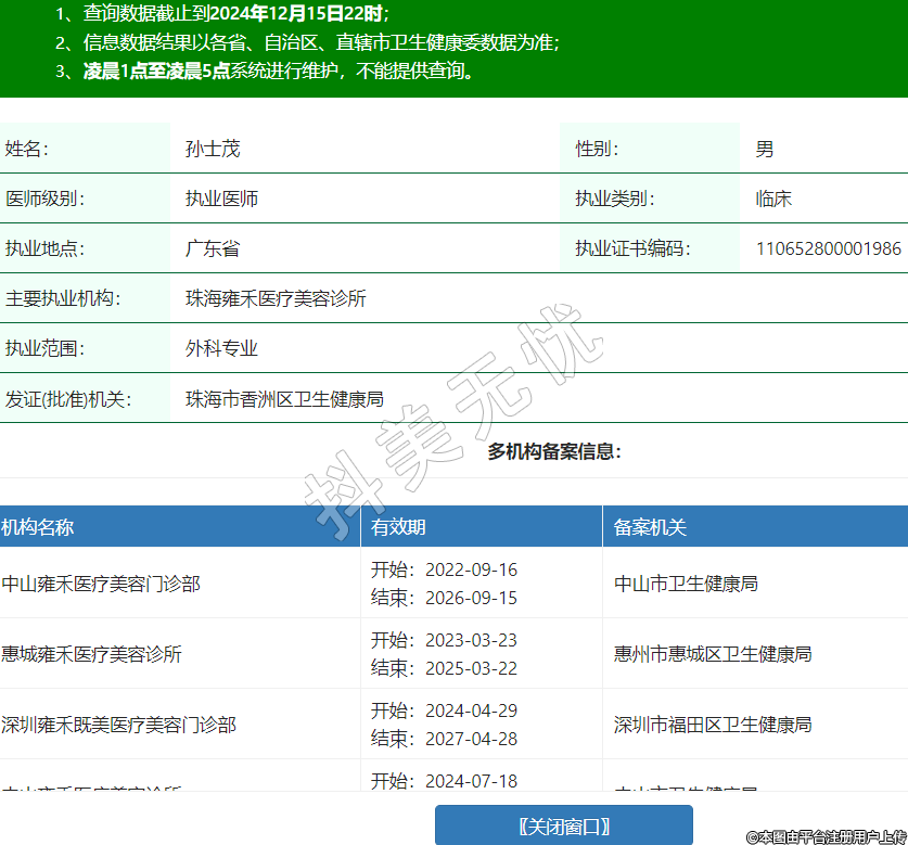 主要執(zhí)業(yè)機(jī)構(gòu):珠海雍禾醫(yī)療美容診所