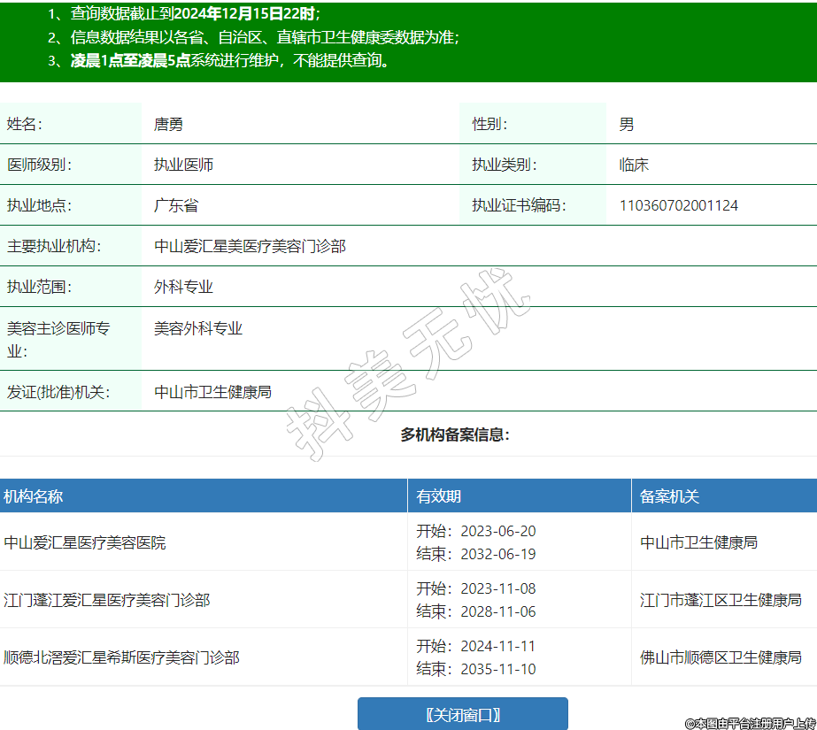 主要執(zhí)業(yè)機構(gòu):中山愛匯星美醫(yī)療美容門診部