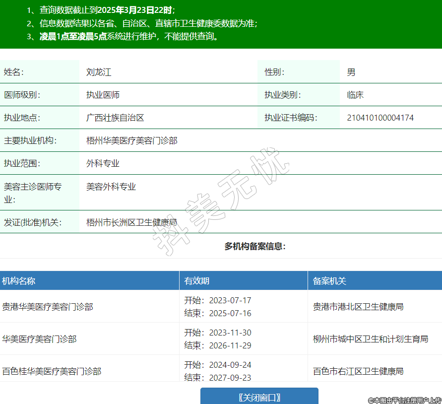 主要執(zhí)業(yè)機(jī)構(gòu):梧州華美醫(yī)療美容門診部