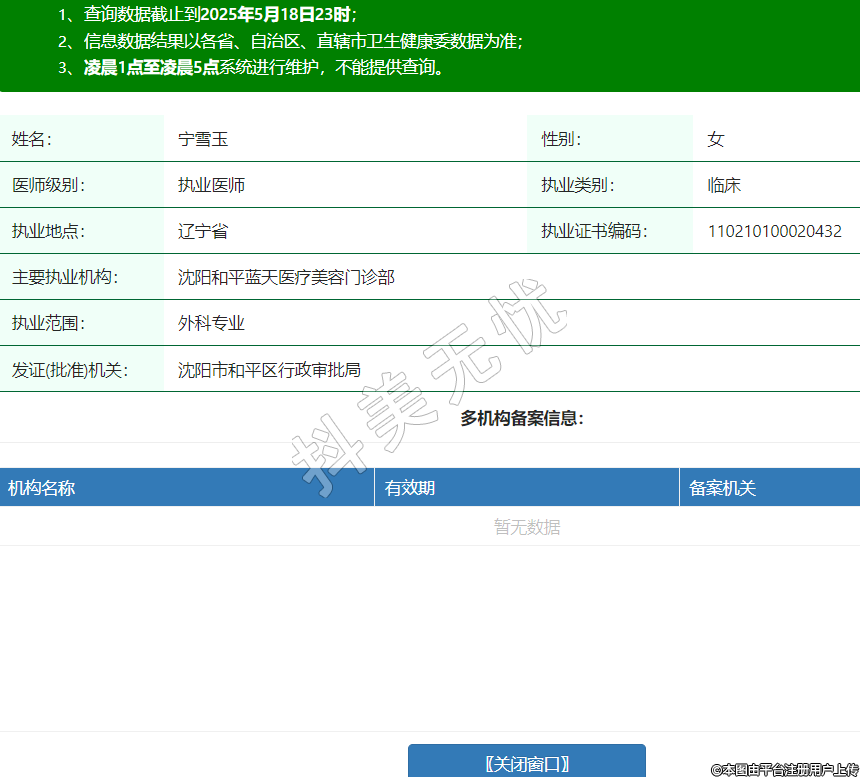 姓名:寧雪玉性別:女醫(yī)師級(jí)別:執(zhí)業(yè)醫(yī)師執(zhí)業(yè)類別:臨床執(zhí)業(yè)地點(diǎn):遼寧省執(zhí)業(yè)證書(shū)編碼:110210100020432主要執(zhí)業(yè)機(jī)構(gòu):沈陽(yáng)和平藍(lán)天醫(yī)療美容門診部執(zhí)業(yè)范圍:外科專業(yè)發(fā)證(批準(zhǔn))機(jī)關(guān):沈陽(yáng)市和平區(qū)行政審批局 -