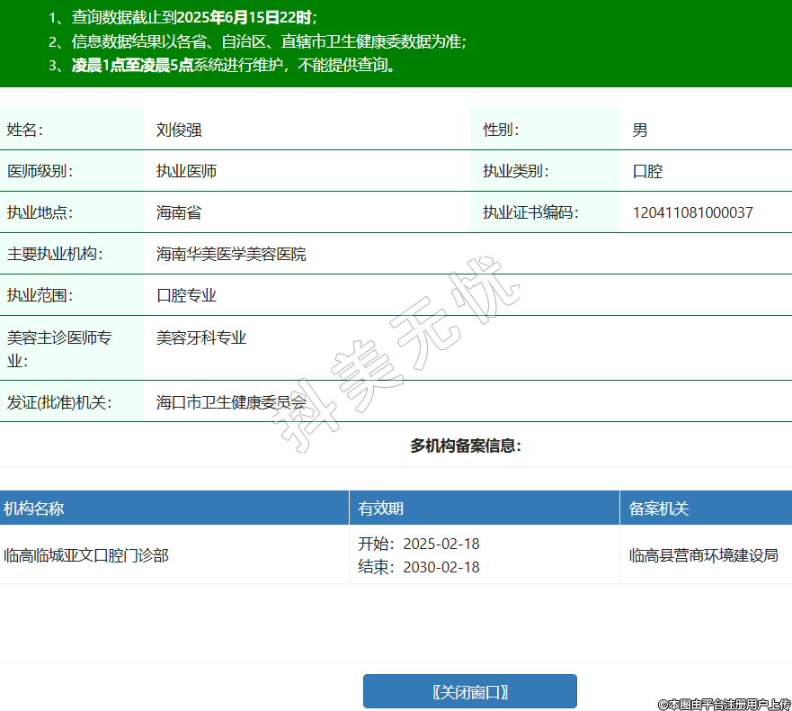 姓名:劉俊強(qiáng)性別:男醫(yī)師級(jí)別:執(zhí)業(yè)醫(yī)師執(zhí)業(yè)類別:口腔執(zhí)業(yè)地點(diǎn):海南省執(zhí)業(yè)證書編碼:120411081000037主要執(zhí)業(yè)機(jī)構(gòu):海南華美醫(yī)學(xué)美容醫(yī)院執(zhí)業(yè)范圍:口腔專業(yè)美容主診醫(yī)師專業(yè):美容牙科專業(yè)發(fā)證(批準(zhǔn))機(jī)關(guān):??谑行l(wèi)生健康委員會(huì)多機(jī)構(gòu)備案信息:機(jī)構(gòu)名稱 有效期 備案機(jī)關(guān) 臨高臨城亞文口腔門診部 開始:2025-02-18結(jié)束:2030-02-18臨高縣營商環(huán)境建設(shè)局 -