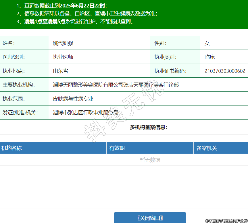 姓名:姚代妍強(qiáng)性別:女醫(yī)師級(jí)別:執(zhí)業(yè)醫(yī)師執(zhí)業(yè)類別:臨床執(zhí)業(yè)地點(diǎn):山東省執(zhí)業(yè)證書(shū)編碼:210370303000602主要執(zhí)業(yè)機(jī)構(gòu):淄博天麗整形美容醫(yī)院有限公司張店天麗醫(yī)療美容門(mén)診部執(zhí)業(yè)范圍:皮膚病與性病專業(yè)發(fā)證(批準(zhǔn))機(jī)關(guān):淄博市張店區(qū)行政審批服務(wù)局 -