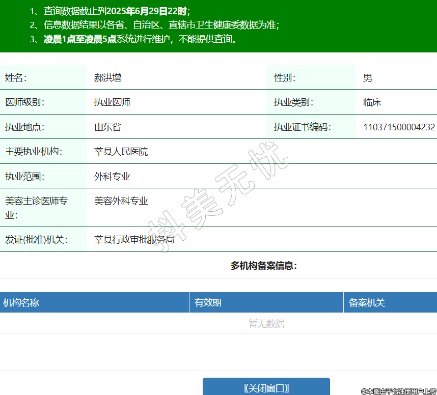 姓名:郝洪增性別:男醫(yī)師級(jí)別:執(zhí)業(yè)醫(yī)師執(zhí)業(yè)類別:臨床執(zhí)業(yè)地點(diǎn):山東省執(zhí)業(yè)證書編碼:110371500004232主要執(zhí)業(yè)機(jī)構(gòu):莘縣人民醫(yī)院執(zhí)業(yè)范圍:外科專業(yè)美容主診醫(yī)師專業(yè):美容外科專業(yè)發(fā)證(批準(zhǔn))機(jī)關(guān):莘縣行政審批服務(wù)局 -