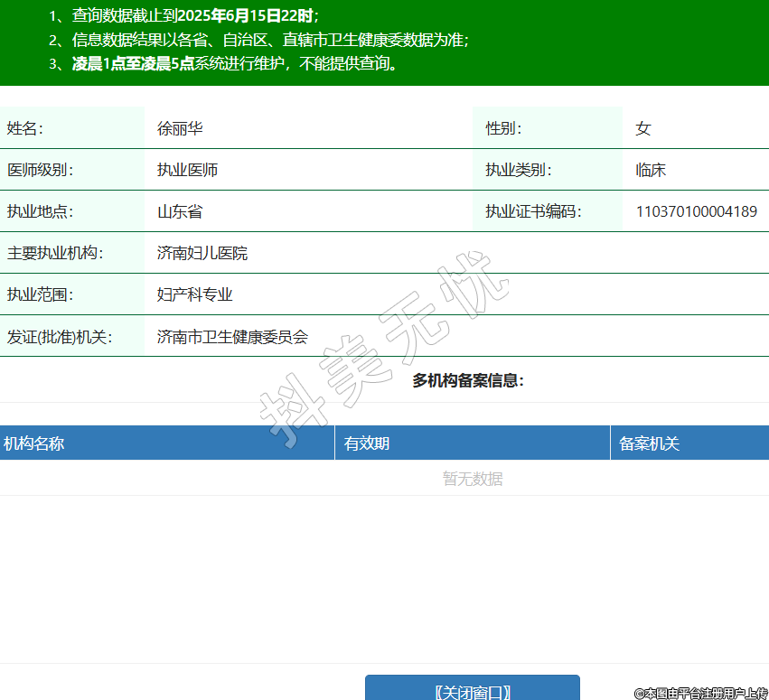 姓名:徐麗華性別:女醫(yī)師級(jí)別:執(zhí)業(yè)醫(yī)師執(zhí)業(yè)類(lèi)別:臨床執(zhí)業(yè)地點(diǎn):山東省執(zhí)業(yè)證書(shū)編碼:110370100004189主要執(zhí)業(yè)機(jī)構(gòu):濟(jì)南婦兒醫(yī)院執(zhí)業(yè)范圍:婦產(chǎn)科專(zhuān)業(yè)發(fā)證(批準(zhǔn))機(jī)關(guān):濟(jì)南市衛(wèi)生健康委員會(huì) -