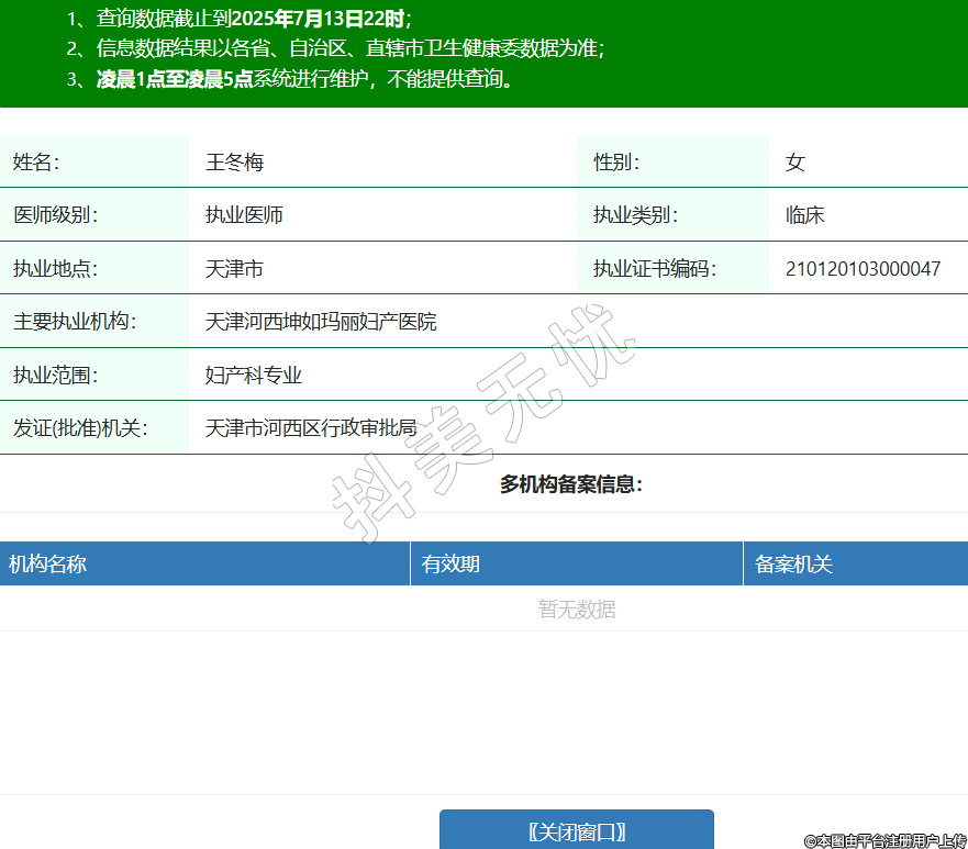 姓名:王冬梅性別:女醫(yī)師級別:執(zhí)業(yè)醫(yī)師執(zhí)業(yè)類別:臨床執(zhí)業(yè)地點:天津市執(zhí)業(yè)證書編碼:210120103000047主要執(zhí)業(yè)機構(gòu):天津河西坤如瑪麗婦產(chǎn)醫(yī)院執(zhí)業(yè)范圍:婦產(chǎn)科專業(yè)發(fā)證(批準)機關(guān):天津市河西區(qū)行政審批局 -