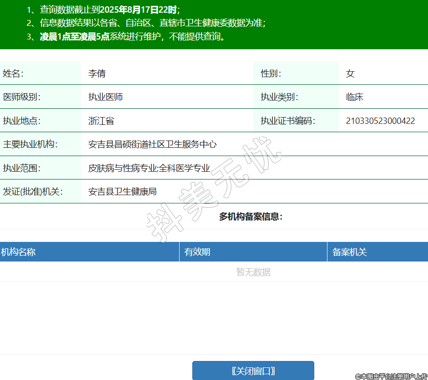 姓名:李倩性別:女醫(yī)師級別:執(zhí)業(yè)醫(yī)師執(zhí)業(yè)類別:臨床執(zhí)業(yè)地點:浙江省執(zhí)業(yè)證書編碼:210330523000422主要執(zhí)業(yè)機構(gòu):安吉縣昌碩街道社區(qū)衛(wèi)生服務(wù)中心執(zhí)業(yè)范圍:皮膚病與性病專業(yè);全科醫(yī)學專業(yè)發(fā)證(批準)機關(guān): -
