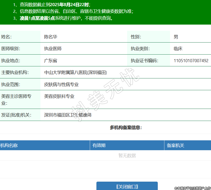 姓名:陳名華性別:男醫(yī)師級別:執(zhí)業(yè)醫(yī)師執(zhí)業(yè)類別:臨床執(zhí)業(yè)地點(diǎn):廣東省執(zhí)業(yè)證書編碼:110510107007492主要執(zhí)業(yè)機(jī)構(gòu):中山大學(xué)附屬第八醫(yī)院(深圳福田)執(zhí)業(yè)范圍:皮膚病與性病專業(yè)美容主診醫(yī)師專業(yè):美容皮膚科專業(yè)發(fā)證(批準(zhǔn))機(jī)關(guān):深圳市福田區(qū)衛(wèi)生健康局 -