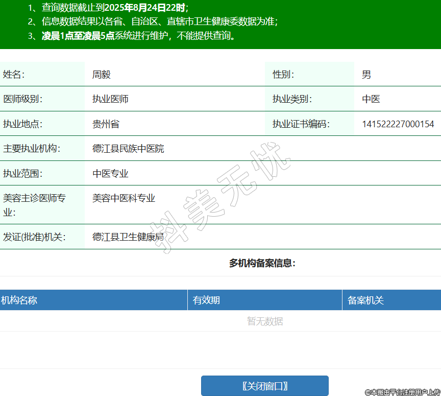 姓名:周毅性別:男醫(yī)師級別:執(zhí)業(yè)醫(yī)師執(zhí)業(yè)類別:中醫(yī)執(zhí)業(yè)地點:貴州省執(zhí)業(yè)證書編碼:141522227000154主要執(zhí)業(yè)機構:德江縣民族中醫(yī)院執(zhí)業(yè)范圍:中醫(yī)專業(yè)美容主診醫(yī)師專業(yè):美容中醫(yī)科專業(yè)發(fā)證(批準)機關:德江縣衛(wèi)生健康局 -