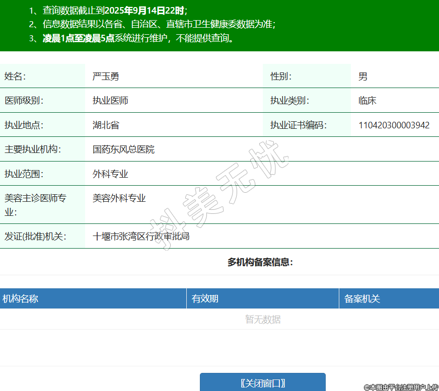 姓名:嚴玉勇性別:男醫(yī)師級別:執(zhí)業(yè)醫(yī)師執(zhí)業(yè)類別:臨床執(zhí)業(yè)地點:湖北省執(zhí)業(yè)證書編碼:110420300003942主要執(zhí)業(yè)機構(gòu):國藥東風(fēng)總醫(yī)院執(zhí)業(yè)范圍:外科專業(yè)美容主診醫(yī)師專業(yè):美容外科專業(yè)發(fā)證(批準)機關(guān):十堰市張灣區(qū)行政審批局 -