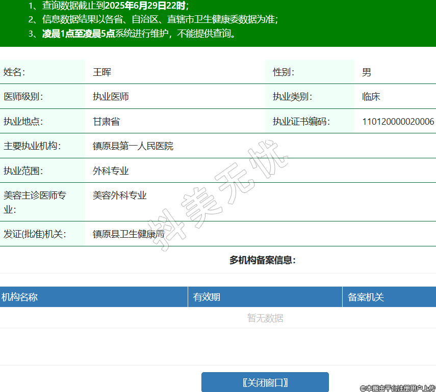 姓名:王暉性別:男醫(yī)師級(jí)別:執(zhí)業(yè)醫(yī)師執(zhí)業(yè)類別:臨床執(zhí)業(yè)地點(diǎn):甘肅省執(zhí)業(yè)證書(shū)編碼:110120000020006主要執(zhí)業(yè)機(jī)構(gòu):鎮(zhèn)原縣第一人民醫(yī)院執(zhí)業(yè)范圍:外科專業(yè)美容主診醫(yī)師專業(yè):美容外科專業(yè)發(fā)證(批準(zhǔn))機(jī)關(guān):鎮(zhèn)原縣衛(wèi)生健康局 -