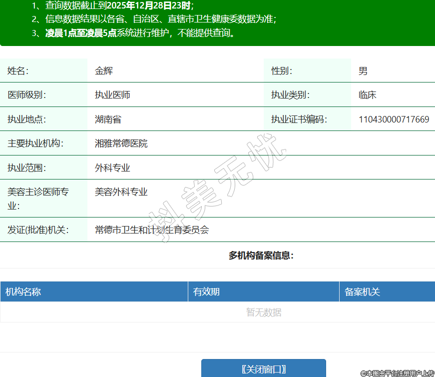 姓名:金輝性別:男醫(yī)師級別:執(zhí)業(yè)醫(yī)師執(zhí)業(yè)類別:臨床執(zhí)業(yè)地點:湖南省執(zhí)業(yè)證書編碼:110430000717669主要執(zhí)業(yè)機構(gòu):湘雅常德醫(yī)院執(zhí)業(yè)范圍:外科專業(yè)美容主診醫(yī)師專業(yè):美容外科專業(yè)發(fā)證(批準(zhǔn))機關(guān):常德市衛(wèi)生和計劃生育委員會 -