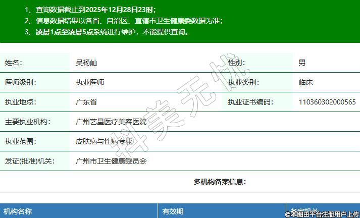 主要執(zhí)業(yè)機構:廣州藝星醫(yī)療美容醫(yī)院