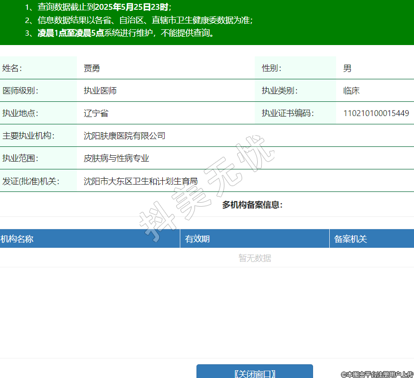 姓名:賈勇性別:男醫(yī)師級(jí)別:執(zhí)業(yè)醫(yī)師執(zhí)業(yè)類別:臨床執(zhí)業(yè)地點(diǎn):遼寧省執(zhí)業(yè)證書編碼:110210100015449主要執(zhí)業(yè)機(jī)構(gòu):沈陽(yáng)膚康醫(yī)院有限公司執(zhí)業(yè)范圍:皮膚病與性病專業(yè)發(fā)證(批準(zhǔn))機(jī)關(guān):沈陽(yáng)市大東區(qū)衛(wèi)生和計(jì)劃生育局 -