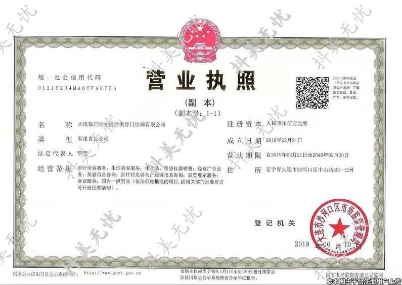 名稱:大連悅己時(shí)光醫(yī)療美容門(mén)診部有限公司