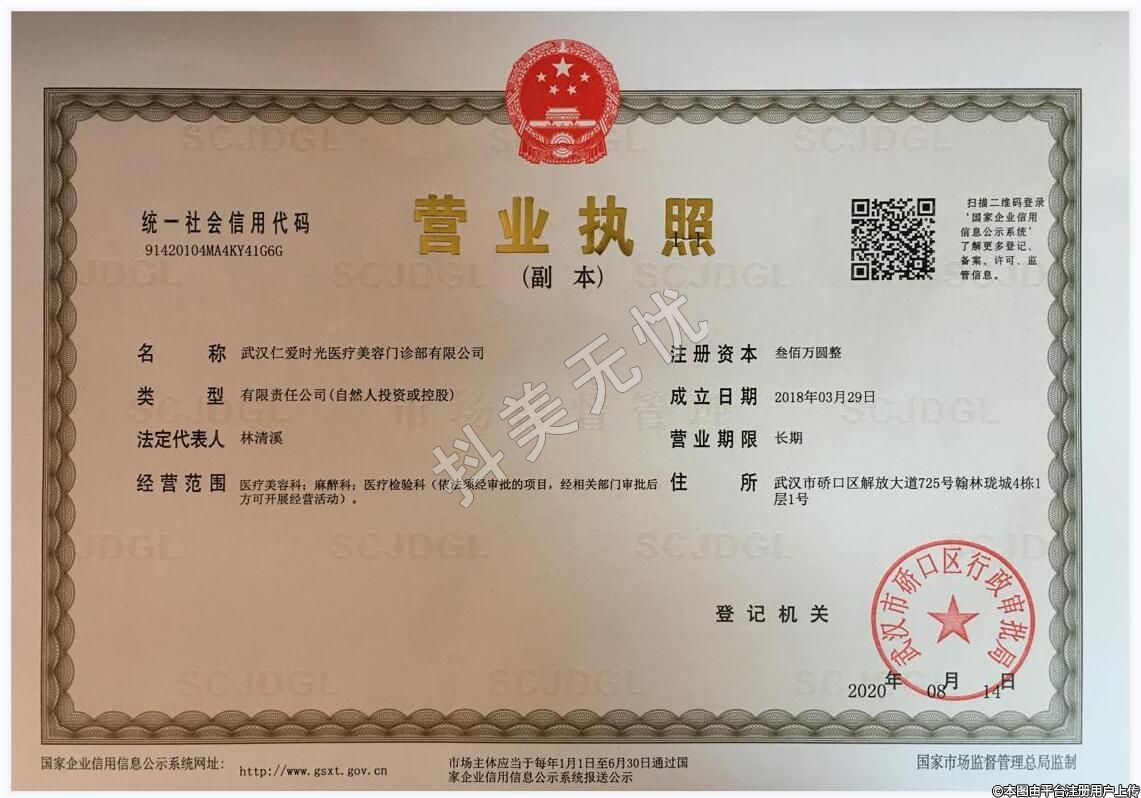 發(fā)證機關:武漢市硚口區(qū)行政審批局